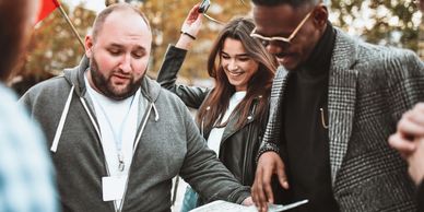This fun and dynamic activity can be held either onsite or as an outdoor community-based experience. Staff are divided into teams to solve riddles, locate items, and complete tasks that promote collaboration, communication, and problem-solving.